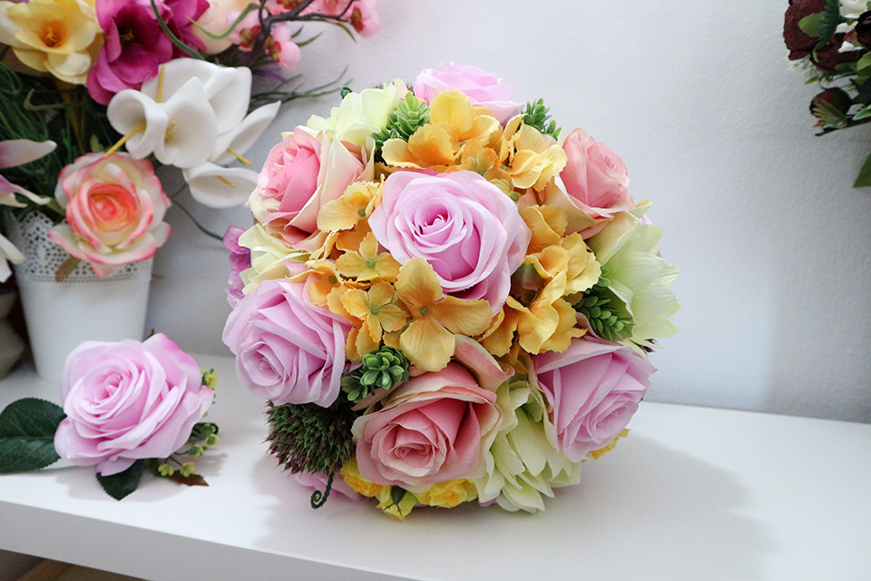 Buchet mare cu flori artificiale si fluturi - Model 1